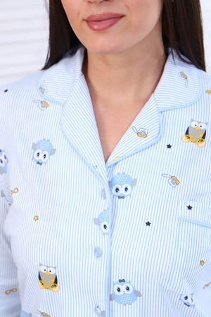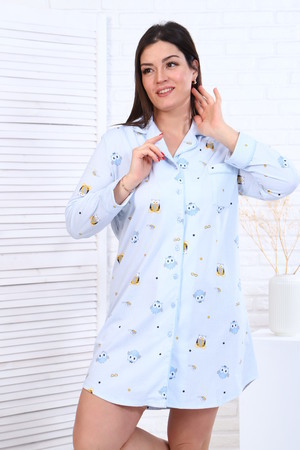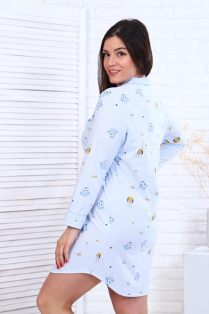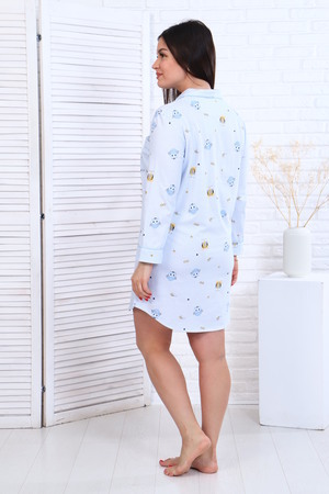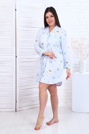 Комфортное платье-пижама из натурального хлопка с длинным рукавом с милым принтом на пуговицах. На воротнике, нагрудном кармане и рукавах - отделка кантом.. Пижама приятна для тела и идеально подходит для отдыха дома и сна. Отличный подарок на День Рождения или 8 марта.