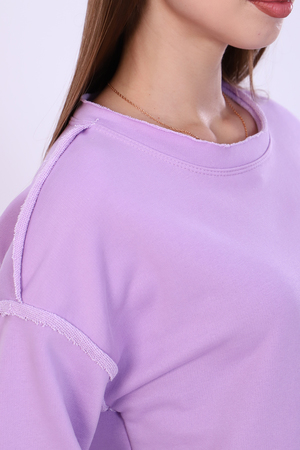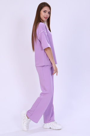 Молодёжный костюм из футера 3-х нитки петля компакт качества пенье. Круглая горловина, широкий 3/4 рукав, спущенная пройма, передняя полочка украшена шевроном, брюки палаццо на распошитом поясе и удобными карманами. Необработанные края толстовки и брюк придают костюму некую изюминку и индивидуальность, являются смелым креативным дизайнерским решением. Теплый костюм согреет Вас на прогулке, сделает комфортным Ваше путешествие, станет удобным для тренировок, фитнеса или ходьбе в парке. Уникальные авторские лекала, удобная посадка, неповторимые оттенки костюма помогут Вам быть в тренде этого сезона!