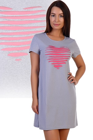 Туника из кулирки с добавлением лайкры. Рукава короткие, общая длина до середины бедра. На груди стилизованное изображение сердца из разрезов