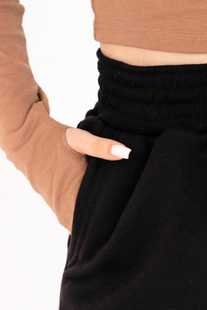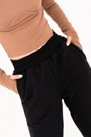 Брюки-джоггеры изготовлены из шикарной ткани интерсофт с начёсом "барашек". Плотность 320 гр. В отличие от ткани футер 3-нитка начёс не осыпается и не пиллингуется. Ткань плотная, упругая, мягкая, одна из толстых и тёплых видов трикотажа в своей группе. Начёс ткани обработан специально в виде барашка. Очень красивый и приятный к телу. Ткань двухсторонняя - интерлок пенье плюс флис. Джоггеры с высокой талией, прямого свободного кроя, слегка зауженные к низу. Имеют внутренние карманы. Пояс обработан на поясной машине, поэтому резинка не скручивается при эксплуатации. Нижняя часть брюк и пояс изготовлены из очень качественной резинки-кашкорсе в цвет основной ткани. В измерениях обхвата талии указан размер резинки, которая без проблем растягивается до стандартных значений фигуры. Носите с удовольствием! В комплект к брюкам можно приобрести толстовку 21562; продается отдельно