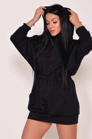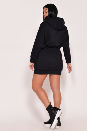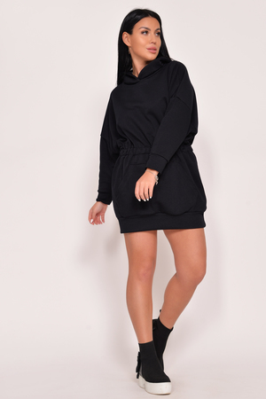 Универсальное, практичное, и в это же время женственное спортивное платье - толстовка, модель оверсайз. Эластичная резинка на талии несомненно подчеркнет утонченность и грацию своей прекрасной обладательницы. Длинный, спущенный рукав на манжете, капюшон дополняют этот образ. Летящей походкой...и на прогулку!