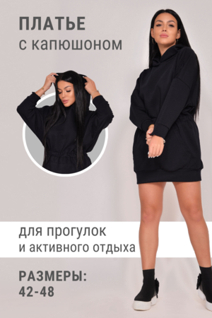 Универсальное, практичное, и в это же время женственное спортивное платье - толстовка, модель оверсайз. Эластичная резинка на талии несомненно подчеркнет утонченность и грацию своей прекрасной обладательницы. Длинный, спущенный рукав на манжете, капюшон дополняют этот образ. Летящей походкой...и на прогулку!