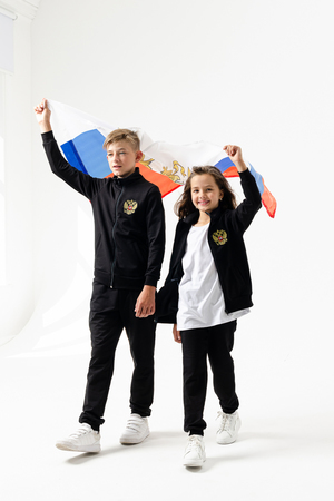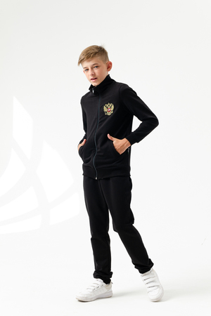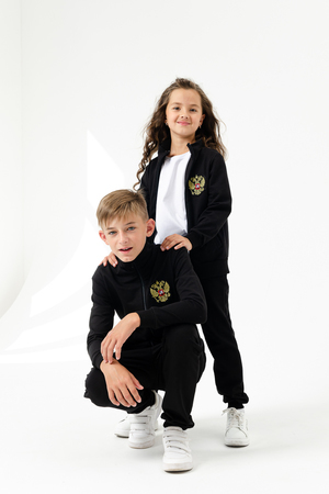 Стильный костюм детский с современным принтом. Используемая ткань легкая, отлично пропускает воздух и позволяет коже дышать. На молнии.