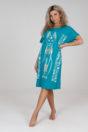 Оригинальная повседневная туника бренда Modalina из 100 % хлопка. Туника прекрасно подойдет для выхода на улицу в летнее время, прогулок на пляж и конечно, для дома, а также станет прекрасным подарком Вашим друзьям и близким. Туника полуприлегающего силуэта, рукав спущенный, короткий, круглый вырез горловины, прорезные карманы, дизайнерский принт "Египетская кошка", длина изделия до колена. Данная модель отлично подойдет на любой тип фигуры и на любой возраст. Надеемся Вы останетесь довольны покупкой! Мы работаем для Вас! Возможны расхождения в оттенках представленных на сайте.