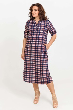 Платье выполнено из комфортной, приятной к телу ткани. Благодаря свободному фасону рубашечного кроя оно не обтянет вашу фигуру. Красивая застёжка-поло. Низ изделия слегка закруглён к боковым срезам. Добавлены карманы в боковых швах и паты на рукава, чтобы их было удобно подвернуть. Нагрудная вытачка переведена в две мягкие складки из-под кокетки спереди. Сзади также припуск на свободу облегания достигается с помощью складок из-под кокетки. Модель хорошо садится на любой тип фигуры за счёт большого размера припусков на свободу. Данная модель рассчитана для использования на каждый день. Также подойдёт для беременных на ранних сроках. Носите с удовольствием!