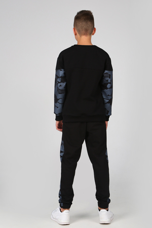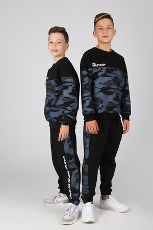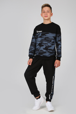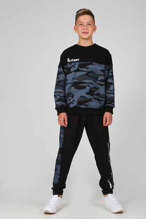 Свободный крой этого комплекта, состоящего из свитшота и джоггеров, обеспечит превосходный комфорт в носке. Свитшот с круглой горловиной, длинным рукавом, манжетами и поясом из эластичного трикотажа. Джоггеры с контрастными вставками в боковом шве, пояс и манжеты цельнокроеные с вшитой внутрь резинкой. Дополняет костюм текстовый принт на полочке и передней половинке.