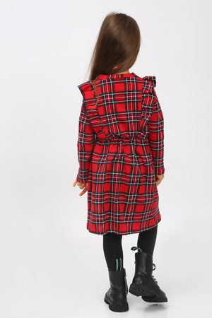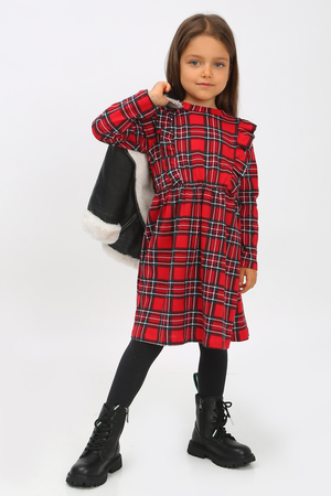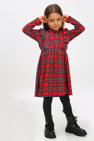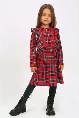 Платье отрезное расклешенное, приталенный силуэт, с оборкой-фартук, рукав длинный. Нарядное, подходит для праздников, повседневной носки, платье в детский садик. Тренд 2022 г.