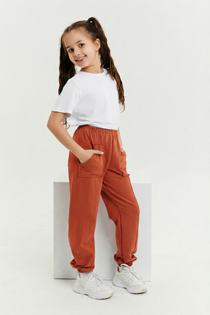 Брюки детские из футера с накладными карманами.