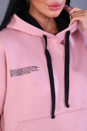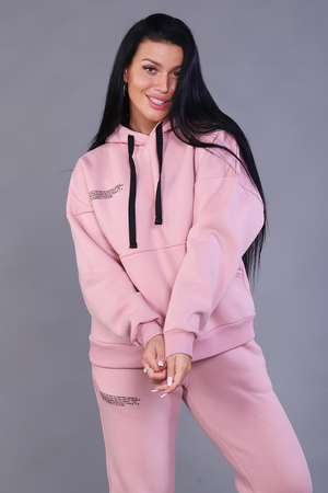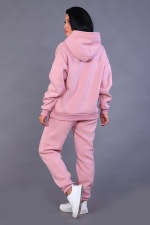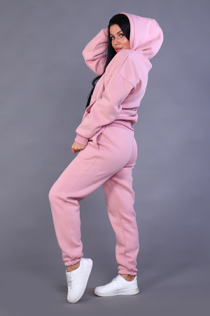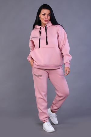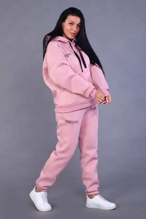 Костюм женский из 3-х нитки. Спущенный рукав. Карман внутренний в шов рельефа. На брюках внутренний карман с листочкой. Низ брюк резинка. Манжет и пояс из кашкорсе. Имеется печать на полочке и на брюках с правой стороны. Очень теплый и стильный. Костюм подходит как для занятия спортом, так и для повседневной носки.