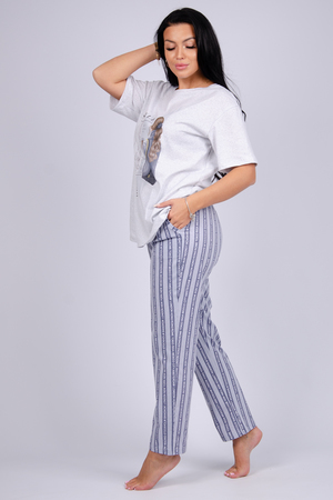 Повседневный женский костюм для дома и отдыха. Футболка средней длины. Брюки прямые, полуприлегающие, с боковыми карманами. Комплект идеально подойдет для повседневной жизни, домашних дел, для сна и отдыха. Костюм из 100% хлопка, что позволяет коже дышать. Стильный, яркий костюм - отличный подарок для девушек, женщин, мамы, дочери, сестры, подруге. Может использоваться как красивая пижама для сна.