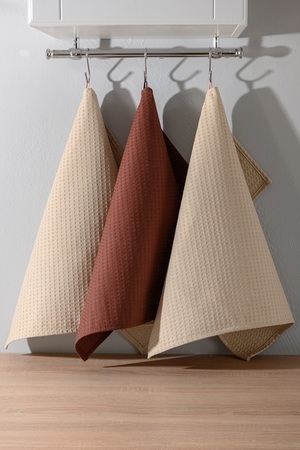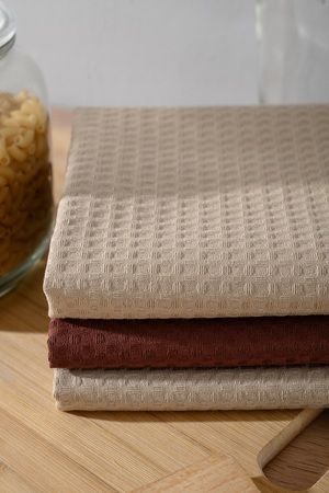 Набор кухонных вафельных полотенец размером 45*60- 3 штуки в упаковке. Вафельное полотно с крупной  клеткой для лучшего впитывания влаги. Кухонные полотенца с петелькой для подвешивания. Главные достоинства кухонного полотенца: натуральный и гипоаллергенный состав, сохраняет форму после многочисленных стирок. Набор полотенец станет прекрасным подарком на Новый Год, День Рождения, 8 марта, на свадьбу, новоселье, день учителя или просто так для каждой хозяйки. Перед применением вафельные полотенца для кухни необходимо постирать, чтобы стали мягче. После стирки полотенце кухонное дает небольшую усадку и становится более "пышным", так как это свойство вафельной ткани с составом 100% хлопок и говорит о том, что ткань не подвергалась химической обработке. Чтобы вернуть первоначальный вид необходимо погладить с паром и растянуть полотенце. Варианты применения набора кухонных полотенец: можно использовать как полотенце для рук, как сервировочные салфетки, для протирания посуды из керамики и стекла, как прихватку для кухни, как коврик в холодильник, как полотенце для детского сада.