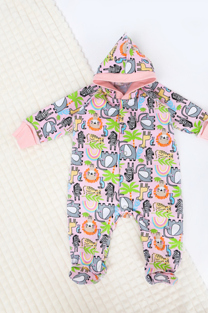 Комбинезон с капюшоном для девочки. Выполнен из 100% хлопка. Ткань футер. Внутри изделия начес. Застежки - кнопки по всему изделию. По стирки может давать усадку.
