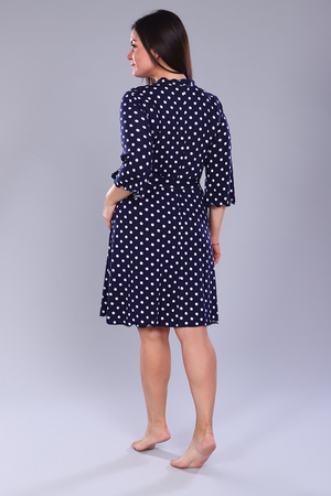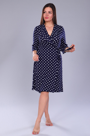 Халат из вискозы на запах, рукав чуть расклешенный 3\4,длина до колена, по груди рюши. Очень приятный к телу.