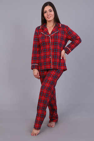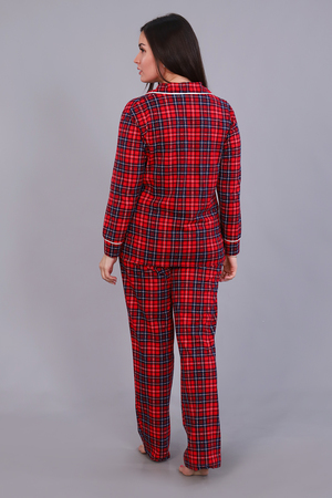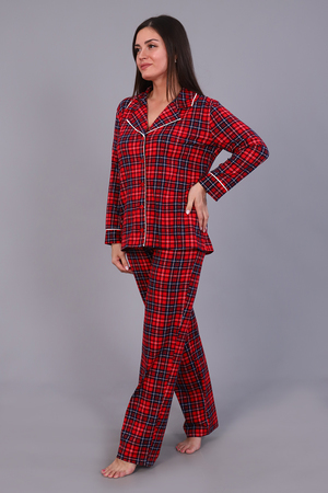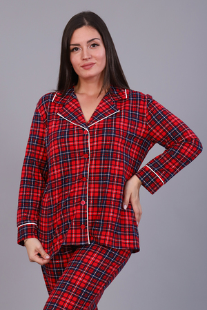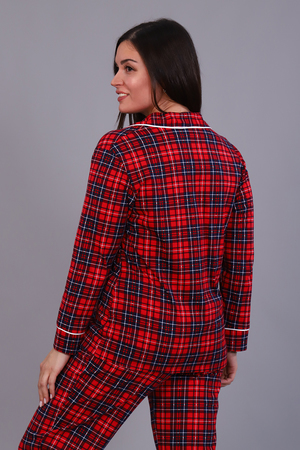 Пижама свободного кроя с лацканами и воротником, отделанными кантом. Брюки прямого кроя. Модная, современная вещь в гардеробе каждой девушки.
