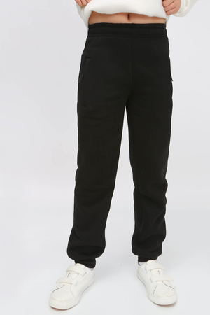 Спортивные утепленные детские брюки на манжетах. Пояс на резинке, два боковых кармана на молнии. Обеспечивает тепло, комфорт и модный вид брючкам. Отлично подходит для физкультуры на открытом воздухе, для походов, прогулок.