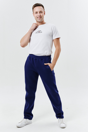 Брюки утепленные, на поясе, свободные, с боковыми карманами. Вдоль боковых швов расположены лампасы.