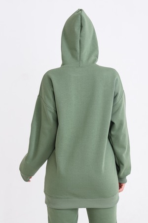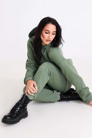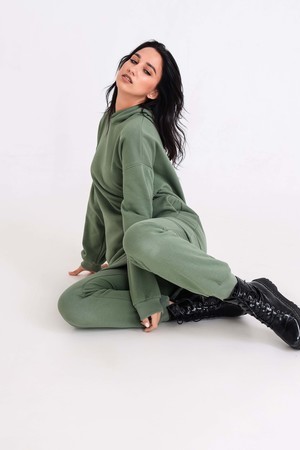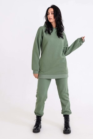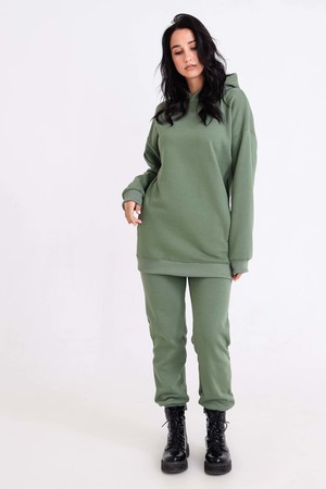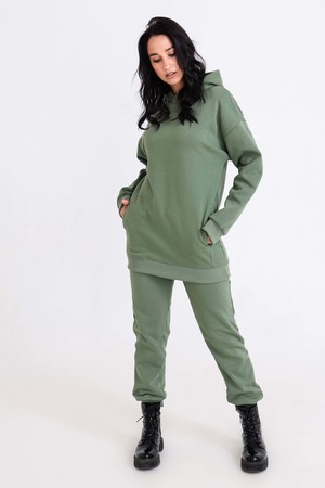 Худи, выполненное из очень качественной ткани - интерсофт с начёсом "барашек". Плотность 320гр. В отличие от ткани футер 3-х нитка, начёс не осыпается и не пилингуется. Ткань плотная, упругая, мягкая, одна из толстых и тёплых видов трикотажа в своей группе. Начёс ткани обработан специально в виде барашка. Очень красивый и приятный к телу. Ткань двухсторонняя - интерлок пенье плюс флис. Худи идеально подходит для холодного время года. Имеет средний объём и прямой силуэт. Поэтому в измерениях указаны одинаковые значения обхватов груди, талии, бёдер. Спущенная линия плеч обеспечит комфорт и свободу движений. Капюшон свободный. На полочке имеется подрезной бочок, в котором располагаются внутренние глубокие карманы. Манжеты выполнены из качественного кашкорсе, которые не растягиваются после стирки. Рекомендуется ручная стирка. В комплект к толстовке можно приобрести брюки 21558; продаются отдельно