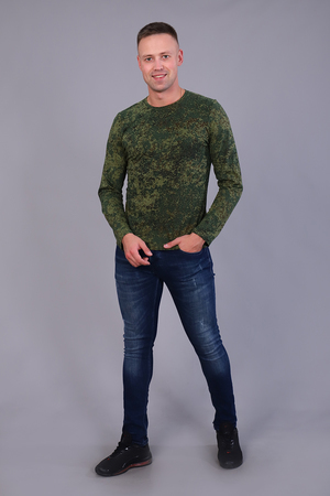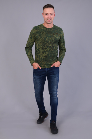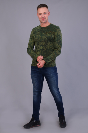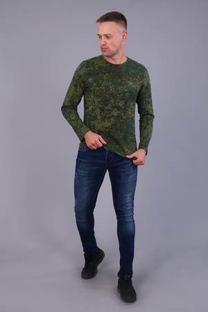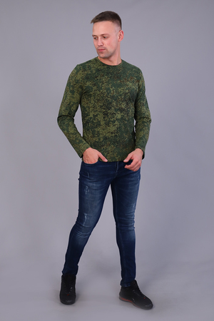Джемпер прямого кроя с длинным рукавом и круглым вырезом горловины