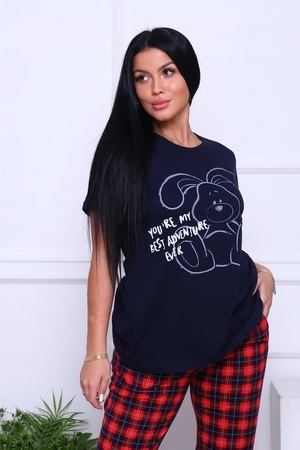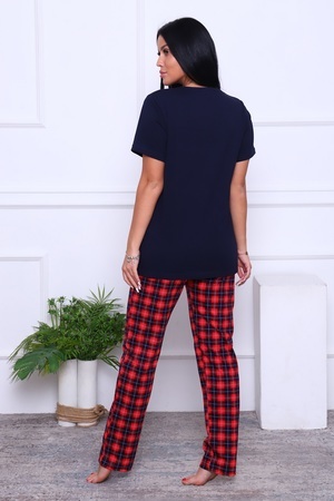 Пижама женская с актуальным новогодним принтом "заяц" на футболке. Стильные брюки в клетку с удобными карманами и комфортным мягким поясом. Милая уютная домашняя одежда подарит радость Вам и вашим близким!
