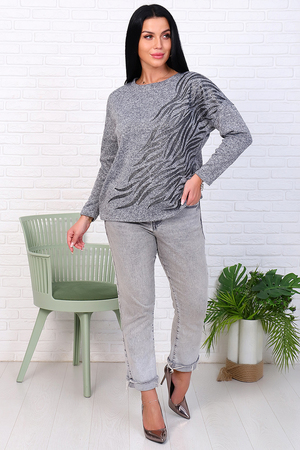 Модель свободного силуэта длиной до линии бёдер, рукав длинный со спущенной проймой. На передней части изделия нанесён стильный и оригинальный принт. Джемпер изготовлен из мягкой и тёплой трикотажной ткани ''Сандра'', она не мнётся, не даёт усадку и приятна в носке. Свободный крой не стесняет движений, сочетается с любыми видами одежды, а стильный образ будет актуален и в офисе, и на встрече с друзьями. В замерах указана длина рукава от начала горловины.
