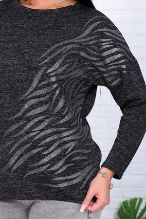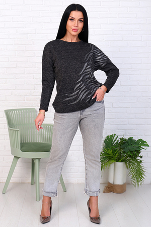 Модель свободного силуэта длиной до линии бёдер, рукав длинный со спущенной проймой. На передней части изделия нанесён стильный и оригинальный принт. Джемпер изготовлен из мягкой и тёплой трикотажной ткани ''Сандра'', она не мнётся, не даёт усадку и приятна в носке. Свободный крой не стесняет движений, сочетается с любыми видами одежды, а стильный образ будет актуален и в офисе, и на встрече с друзьями. В замерах указана длина рукава от начала горловины.