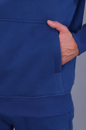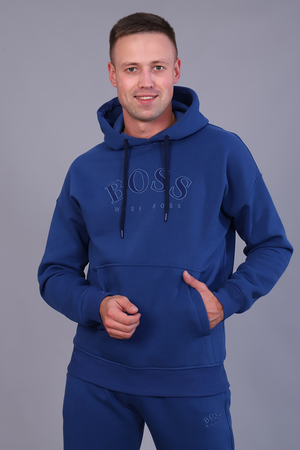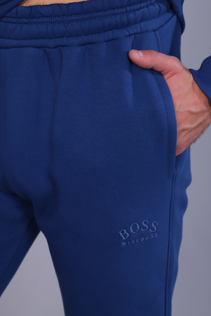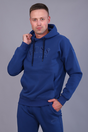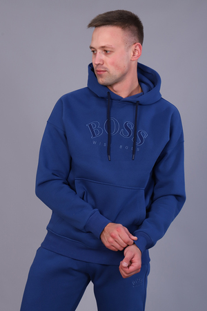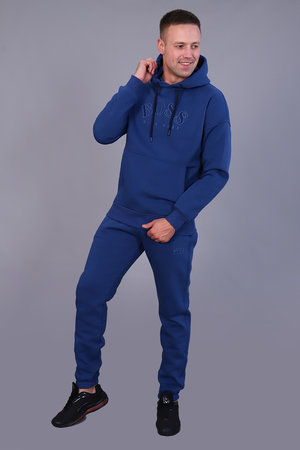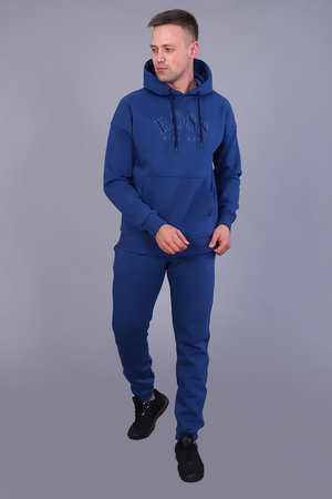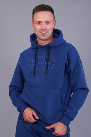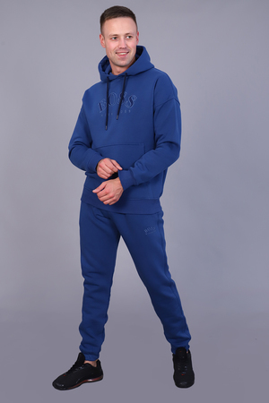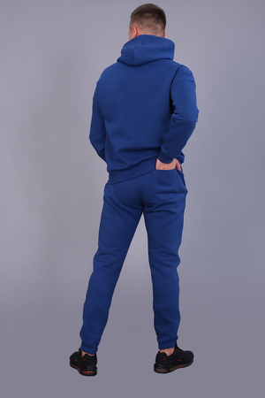 Костюм мужской утепленный из футера 3-х нитки с начесом. Толстовка с капюшоном на шнурке и карманом-кенгуру с текстовой вышивкой на груди. Рукава и пояс - манжет. Брюки имеют прорезные карманы по бокам и накладной карман сзади. Пояс на резинке дополнен шнурком для регулирования объема талии, низ на резинке. Интересные цветовые решения костюма и модный крой сделают образ стильным и запоминающимся.
