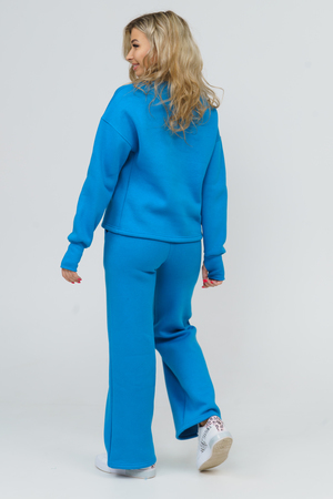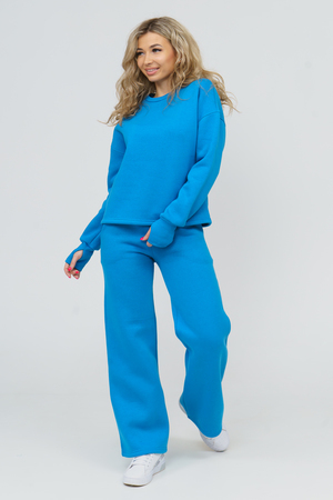 Модный женский костюм в стиле oversize - это свитшот и широкие брюки - палаццо, которые помогут Вам быть в тренде этого сезона! Костюм состоит из объёмного свитшота с удлинёнными манжетами по рукаву и прорезью для большого пальца. Линия плеча на толстовке спущена. Длина рукава указана от точки основания шеи. Брюки-палаццо с высокой посадкой, боковыми карманами и поясом, обработанном на специализированной машине, делают костюм более удобным и комфортным. В свою очередь материал, из которого выполнен костюм, имеет множество достоинств: натуральный состав, необыкновенная мягкость, гипоаллергенность, формоустойчивость (при правильном уходе и стирке 30-40 °С). Костюм в этом стиле прекрасно подойдёт под лаконичный офисный стиль, для вечерних прогулок и повседневных образов, для занятий спортом, для учёбы... А так же прекрасно будет смотреться на любом типе фигуры, скрывая её недостатки и подчёркивая достоинства.
