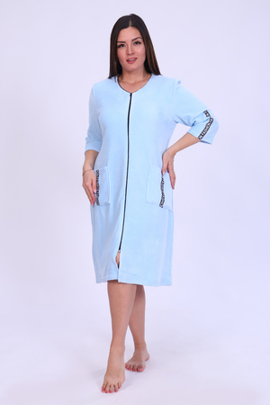 Халат женский, длиной ниже колена, свободного кроя. Рукав ниже локтя. Накладные карманы. Идеально подойдет на любую фигуру.