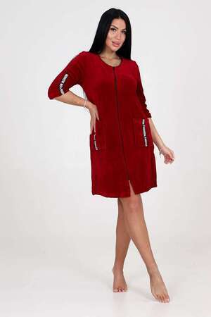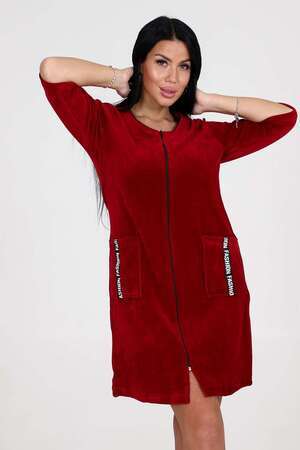 Халат женский, длиной ниже колена, свободного кроя. Рукав ниже локтя. Накладные карманы. Идеально подойдет на любую фигуру.