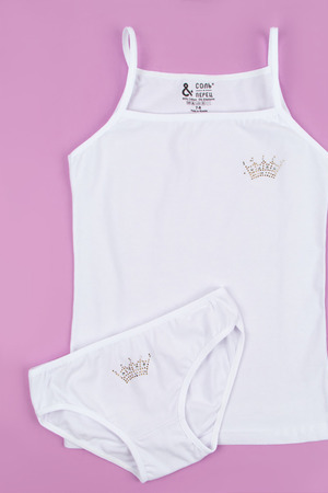 Комплект нижнего белья для девочек. Натуральный материал, не вызывает аллергии и раздражения кожи. Обладает высокими гигроскопичными и воздухопроницаемыми свойствами.