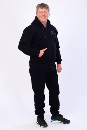Теплый мужской костюм толстовка + брюки. Толстовка с капюшоном, застегивается на молнию, на животе карманы, рукава и низ отделаны манжетами. Брюки с карманами, внизу манжеты. Несколько вариантов расцветки. Размеры от 46 до 58.