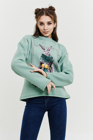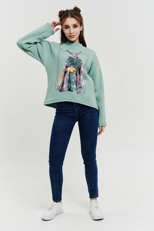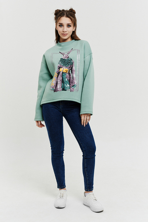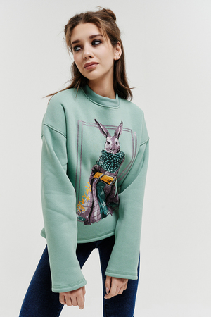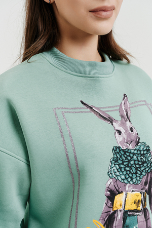 Покупатель на Ozon17.10.2025 в 08:43На 40-42 свитшот сел комфортно, в меру великоват) мне понравился цвет(такой же, как и в карточке товара), принт в виде зайца стиляги), цена, на момент покупки. симпатичная, тëплая вещь на 176 рост хотелось бы конечно полноценной длины, но на высокий рост трудно найти вещи. спасибо и на том, что рукава как раз) а по длине самое то под mom'сы. к покупке рекомендую💕