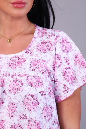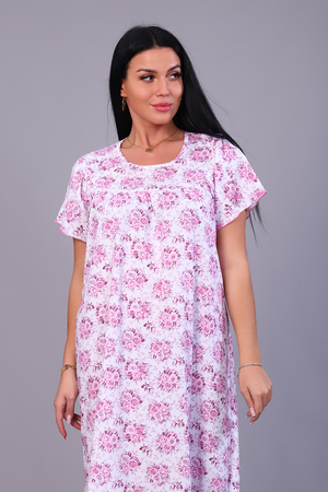 Женская ночная сорочка, рукав крыло, по груди и спинке кокетка. Спинка со швом, длина до икры, обработана под краевку.
