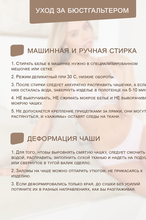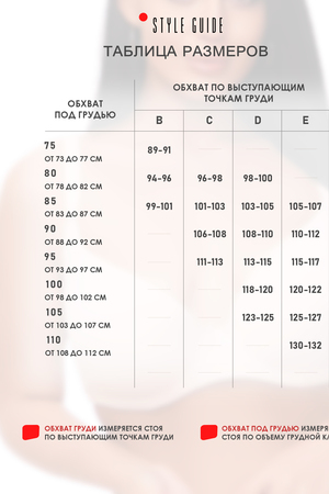 Гладкий бюстгальтер STYLE GUIDE - это отличный вариант базового бюстгальтера на каждый день. Будьте внимательны при выборе размера. Чаша А - без пушапа, без съемных бретелей. Чаша В, С - с пушапом и со съемными бретелями. Чаша D - без пушапа, со съемными бретелями. Чаша Е - без пушапа, со съемными бретелями. Модель МАЛОМЕРИТ в чаше на размер. Бюстгальтер отлично подходит на каждый день, в офис, на прогулку, на свадьбу, в школу. Если вам пришел бюстгальтер с мятой чашей - это легко исправить утюгом или отпаривателем.