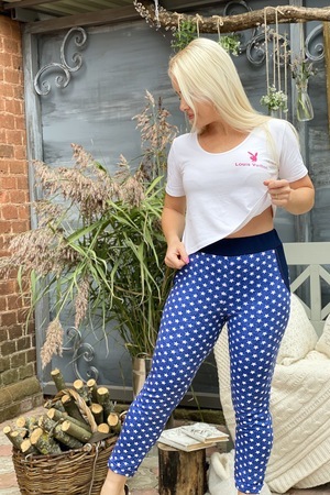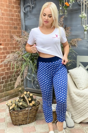 Облегающие брюки из футера с лайкрой. Несколько вариантов расцветки. Сзади имеются карманы, общая длина до щиколоток. В расцветке "звезды" возможен более мелкий узор звездочек.