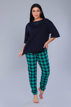 Яркий женский костюм из 100% хлопка состоит из футболки и брюк. Свободная футболка прямого силуэта со стильной печатью по горловине. Брюки на поясе, имеются два боковых кармана, низ брюк с эластичной тесьмой. Удобный яркий костюм не оставит Вас равнодушной. Натуральная, приятная и мягкая ткань позволяет коже дышать. Костюм отлично подходит для дома.
