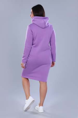 Стильное женское платье с капюшоном на люверсах. Длинный рукав, карман кенгуру, по линии талии кокетка. Удобно и практично.