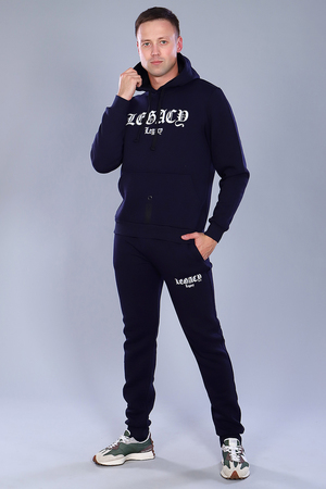Мужской костюм утепленный из футера 3-х нитки с начесом. С капюшоном. Рукава и низ брюк манжеты из кашкорсе. Карман кофты кенгуру, на брюках карман рамка. Имеется печать на брюках и на полочке. Интересные цветовые решения костюма и модный крой сделают образ стильным и запоминающимся.