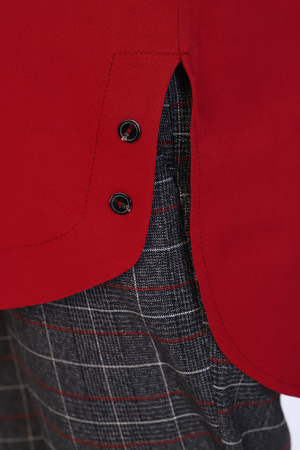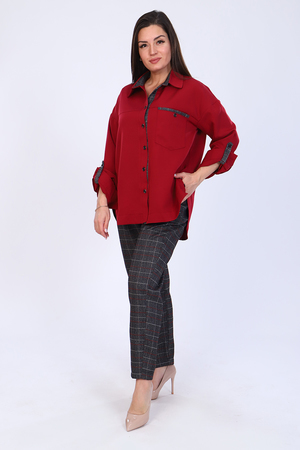 Клетка всегда была и будет классикой, особенно красиво она сочетается с однотонным цветом. Женский костюм состоит из двух предметов, удобными брюками на резинке из клетчатой ткани и однотонной туникой рубашечного покроя с клетчатой отделкой. Такой костюм не стыдно будет надеть в гости, на работу или просто на вечернюю прогулку. Прекрасно сочетается как с туфлями, так и кроссовками.
