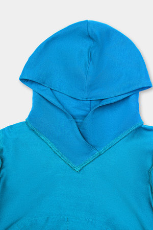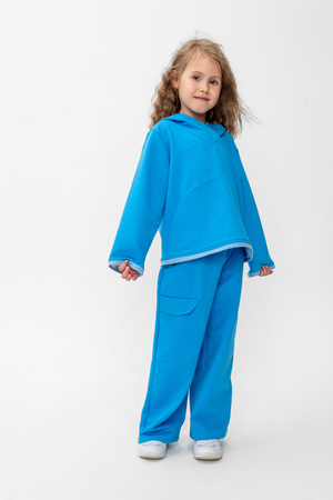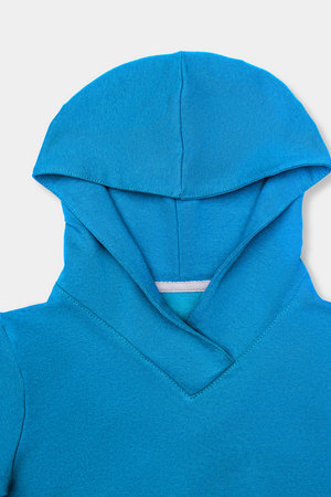 Костюм из мягкого футера двунитки двойного крашения качества пенье. Свободный крой, худи с капюшоном и накладным карманом, брюки прямые с боковыми карманами и одним накладным.
