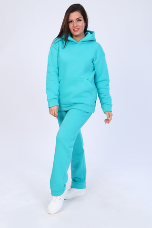 Теплый женский костюм толстовка + брюки. Толстовка с капюшоном, на животе карманы, рукава и низ отделаны манжетами. Брюки с карманами, внизу манжеты. Несколько вариантов расцветки. Размеры от 44 до 54.