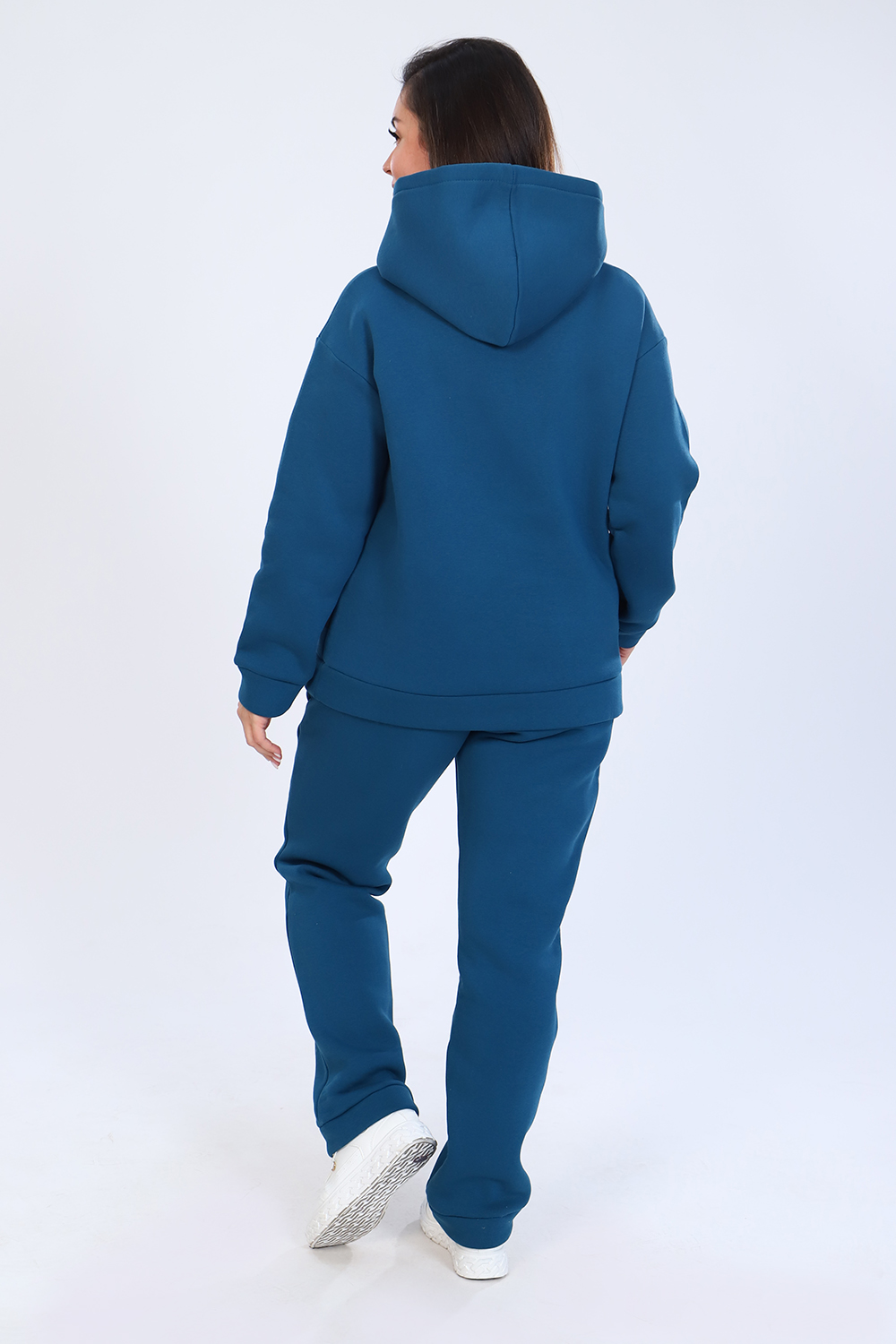 Теплый женский костюм толстовка + брюки. Толстовка с капюшоном, на животе карманы, рукава и низ отделаны манжетами. Брюки с карманами, внизу манжеты. Несколько вариантов расцветки. Размеры от 44 до 54.