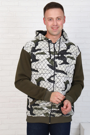 Представляем вам толстовку из жакарда с набивным рисунком камуфляж. Прекрасная модель на молнии, что позволяет быстро одеться, капюшон на шнурке спасет вас от ветра, накладные карманы удобно располагаются в зоне пояса. Фишка этой модели - премиум ткань турецкого производства. Толстовка мягкая и удобная подойдет на прогулку, в поход, на спорт и просто будет радовать вас и ваших близких. Рекомендуем к покупке данную модель.