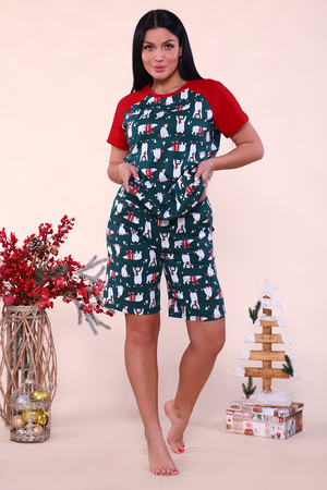 Женский костюм - футболка прямого кроя с классным принтом, шорты прямого кроя с карманами