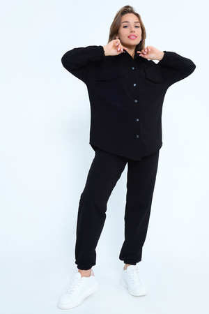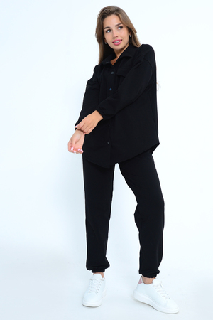 Стильный женский костюм. Рубашка на клепках и джоггеры на резинке. Костюм изготовлен из качественного футера 2-х нитки, ткань приятная к телу и практичная в носке. Незаменимая вещь в гардеробе каждой модницы! Удобный крой, модель оверсайз, благодаря чему костюм совершенно не сковывая движения. Костюм можно приобрести для себя, но также он будет отличным подарком для подруги или мамы. Стань самой модной и привлекательной в современном образе от бренда "Ландыш"