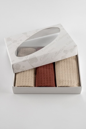 Набор кухонных вафельных полотенец размером 45*60 - 3 штуки в коробе.