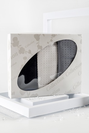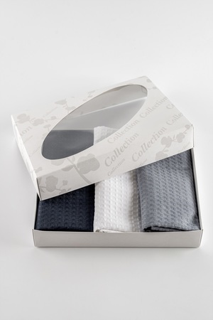 Набор кухонных вафельных полотенец размером 45*60 - 3 штуки в коробе.