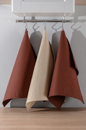 Вафельное полотно с крупной клеткой для лучшего впитывания влаги. Кухонные полотенца с петелькой для подвешивания. Главные достоинства кухонного полотенца: натуральный и гипоаллергенный состав, сохраняет форму после многочисленных стирок. Набор полотенец станет прекрасным подарком на Новый Год, День Рождения, 8 марта, на свадьбу, новоселье, день учителя или просто так для каждой хозяйки. Перед применением вафельные полотенца для кухни необходимо постирать, чтобы стали мягче. После стирки полотенце кухонное дает небольшую усадку и становится более "пышным", так как это свойство вафельной ткани с составом 100% хлопок и говорит о том, что ткань не подвергалась химической обработке. Чтобы вернуть первоначальный вид, необходимо погладить с паром и растянуть полотенце. Варианты применения набора кухонных полотенец: можно использовать как полотенце для рук, как сервировочные салфетки, для протирания посуды из керамики и стекла, как прихватку для кухни, как коврик в холодильник, как полотенце для детского сада.