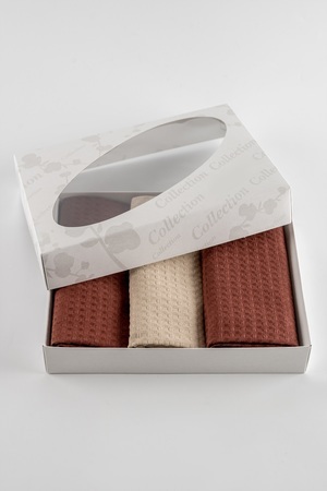 Набор кухонных вафельных полотенец размером 45*60 - 3 штуки в коробе.