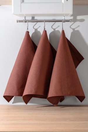 Вафельное полотно с крупной  клеткой для лучшего впитывания влаги. Кухонные полотенца с петелькой для подвешивания. Главные достоинства кухонного полотенца: натуральный и гипоаллергенный состав, сохраняет форму после многочисленных стирок. Набор полотенец станет прекрасным подарком на Новый Год, День Рождения, 8 марта, на свадьбу, новоселье, день учителя или просто так для каждой хозяйки. Перед применением вафельные полотенца для кухни необходимо постирать, чтобы стали мягче. После стирки полотенце кухонное дает небольшую усадку и становится более "пышным", так как это свойство вафельной ткани с составом 100% хлопок и говорит о том, что ткань не подвергалась химической обработке. Чтобы вернуть первоначальный вид, необходимо погладить с паром и растянуть полотенце. Варианты применения набора кухонных полотенец: можно использовать как полотенце для рук, как сервировочные салфетки, для протирания посуды из керамики и стекла, как прихватку для кухни, как коврик в холодильник, как полотенце для детского сада.